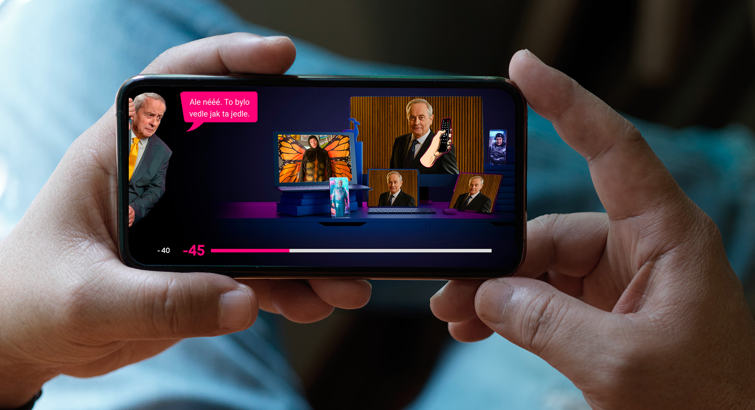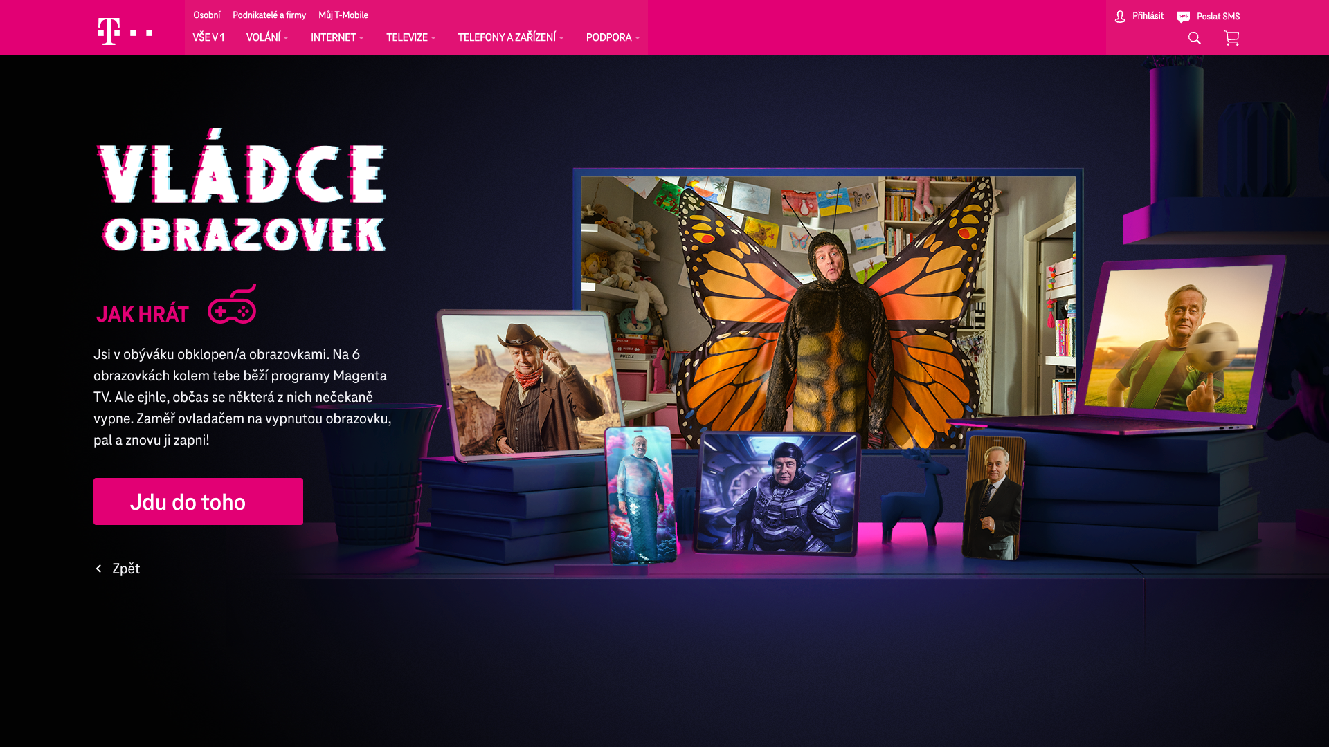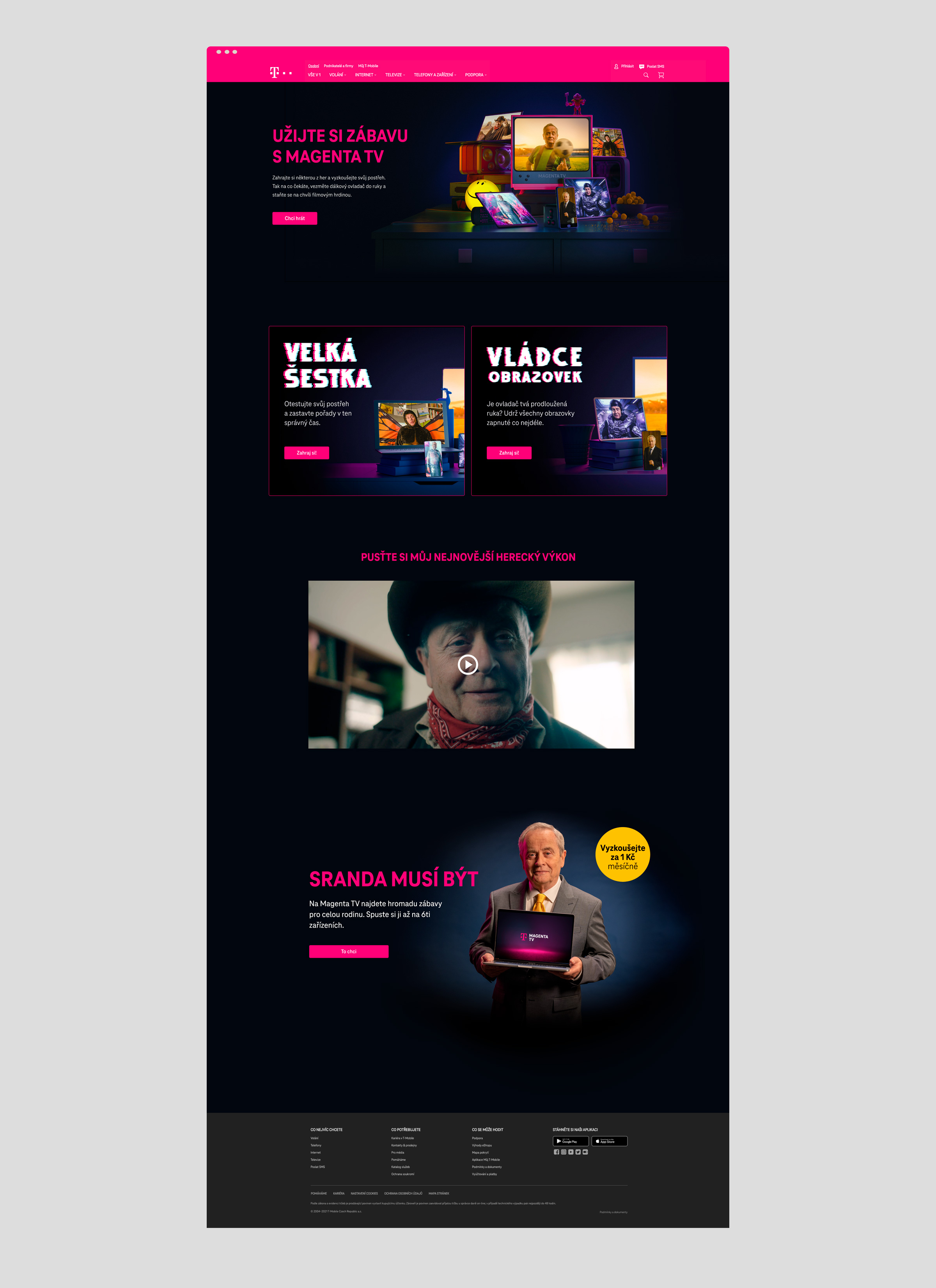 T-Mobile is changing the name of its TV service to Magenta TV. At the same time, he is launching a new campaign with former TV announcer Alexandr Hemala. My task was to develop a campaign landing page and game design for two funny games.