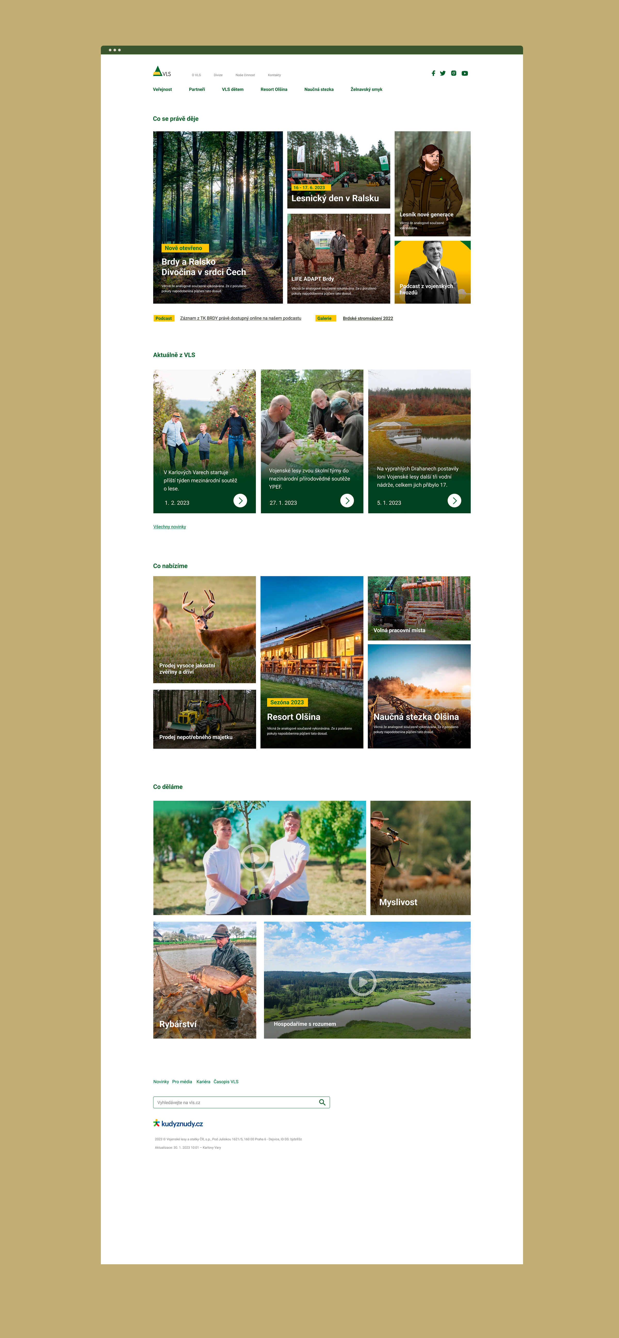 Homepage refresh for Vojenské lesy a statky